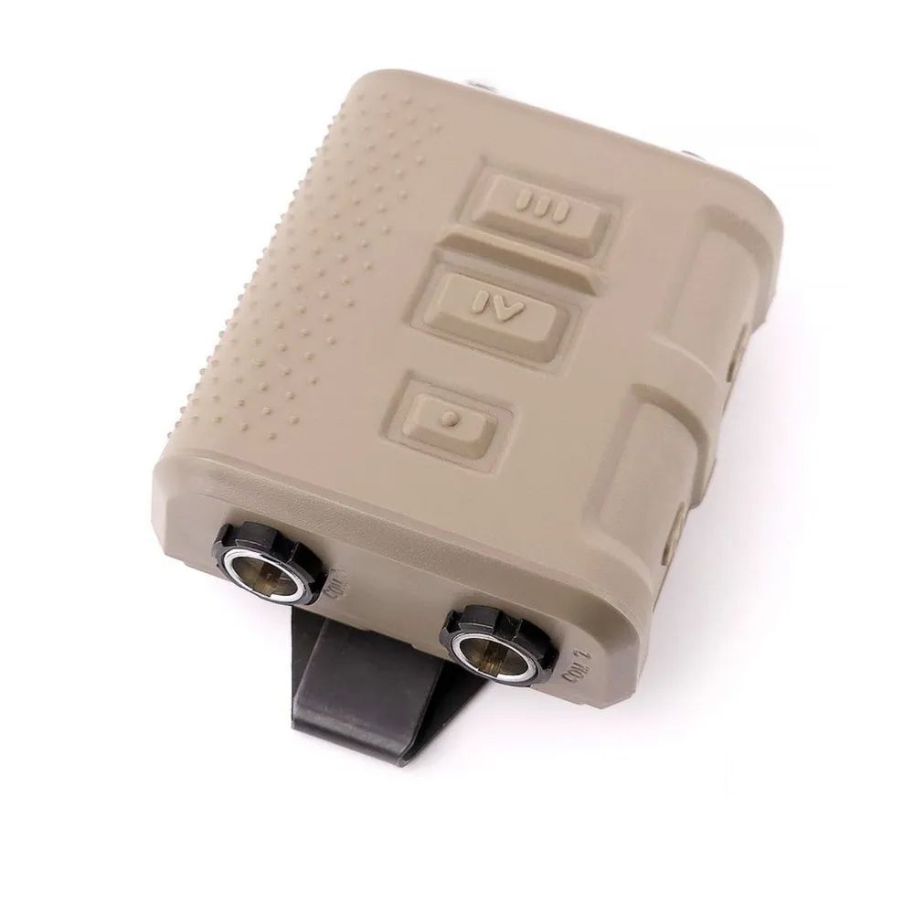 Кнопка PTT V 60 от известного производителя Falco Communications System. Используется для подключения Активных тактических стрелковых наушников FMA FCS AMP, а также наушников других производителей с коннектором интерфейса NATO U-174/u (военная "military" распайка проводов) к одной или двум радиостанциям.