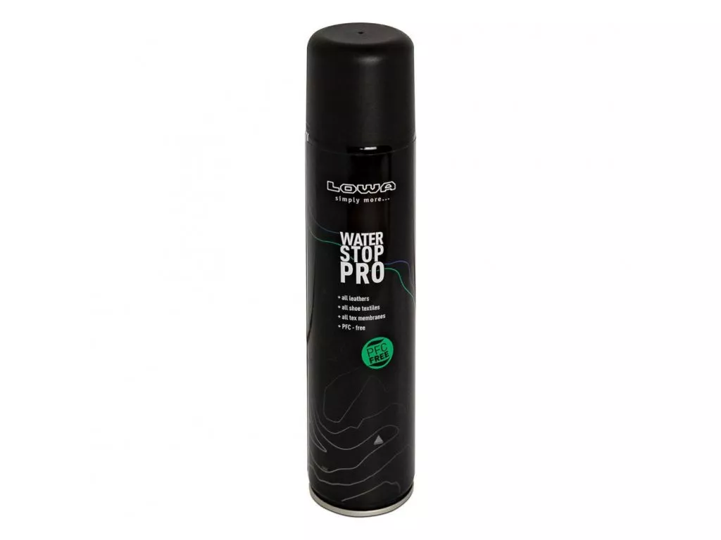 - Водоотталкивающая пропитка-спрей «Lowa Water Stop Spray 300 ml» подходит для всех типов кожи (замша, гладкая кожа, велюр и искусственная кожа) и их комбинаций с текстильными вставками.