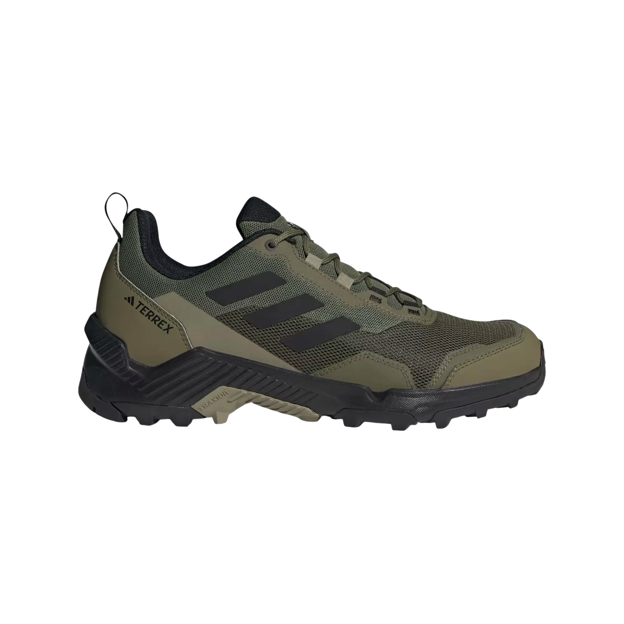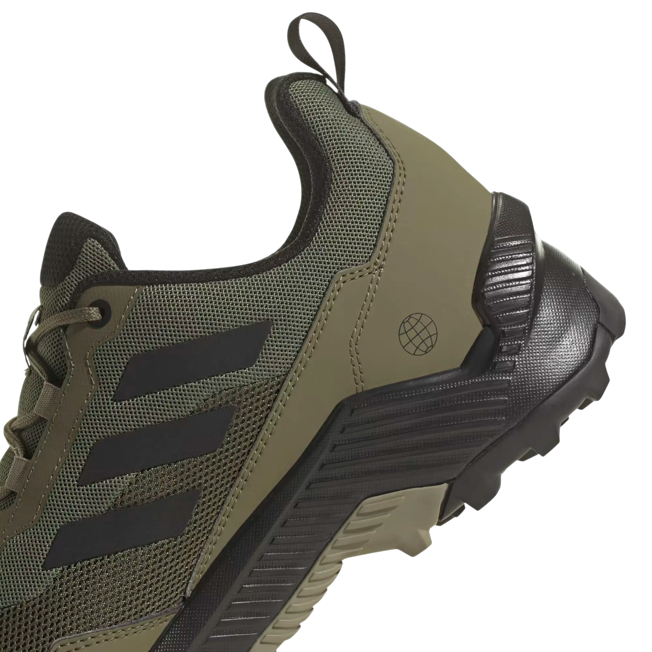 TERREX EASTRAIL 2 мужские ботинки черного цвета. Водонепроницаемые и дышащие. Манжета средней высоты и язычок со складками защищают от мусора, когда тропа рыхлая и пыльная. Подошва Traxion обеспечивает уверенное сцепление на любой поверхности. Обычная посадка. Кружевная застежка. Верх из износостойкой сетки с синтетическими накладками. Межподошва из ЭВА. Подошва Traxion.