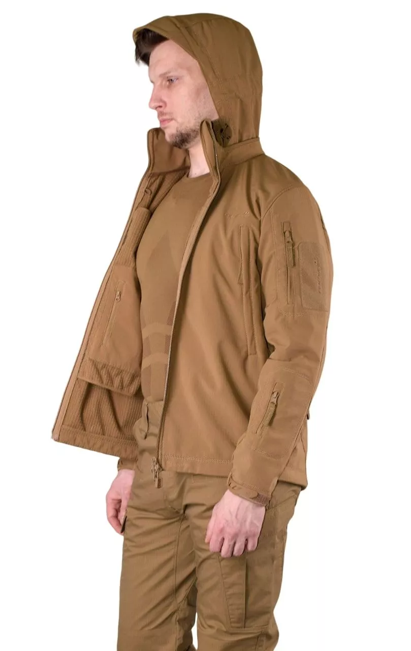 Куртка Pentagon, Artaxes Jacket, Coyote - Легкая куртка Softshell с мембраной StormTex®, которая обеспечивает водонепроницаемость 5000 мм/м2 и воздухопроницаемость 3000 г/м2. Изнутри подкладка из мягкого флиса, сшитая по технологии Grid-Tech®. Куртка отлично защищает от ветра и дождя, обеспечивая при этом очень хорошие тепловые свойства. Все карманы закрыты с застежкой — молнией.