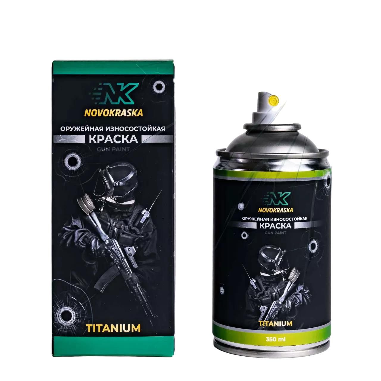 Оружейная камуфляжная краска Titanium NK Novokraska® (Эн Кей Новокраска) в баллоне, применяется для покраски всех типов оружия и предметов экипировки, имеет уникальные свойства, обладает повышенной устойчивостью к механическим нагрузкам, не выгорает при стрельбе из огнестрельного оружия, обладает высокими маскировочными свойствами и малозаметна при наблюдении с использованием оптики и приборов ночного видения. Подходит для покраски металлических, пластиковых, деревянных изделий и предметов из композитных материалов. Цвет Хаки армейский наиболее часто встречается в ВС РФ, входит в состав некоторых камуфляжей.