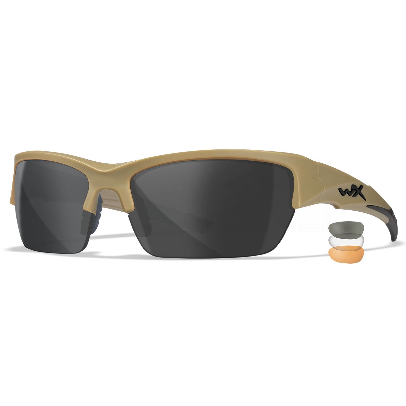 Оригинальные низкопрофильные противоосколочные очки Wiley X тактической линейки VALOR с тремя комплектами сменных линз в матовой песочной оправе (CHVAL06T).