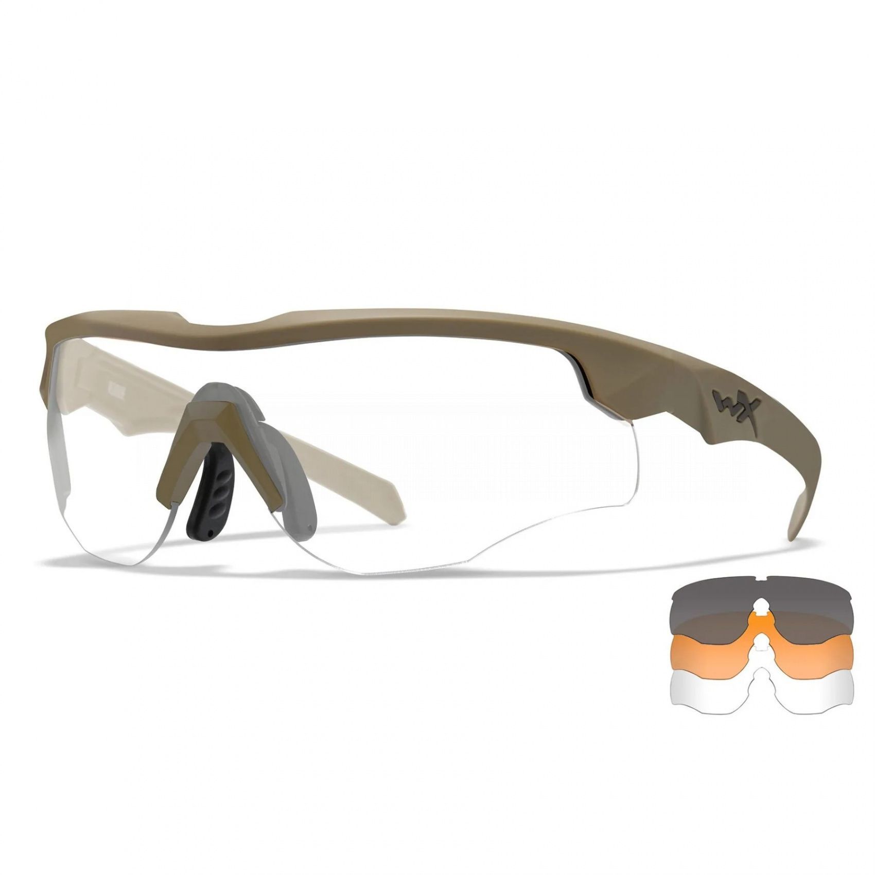 Оригинальные баллистические очки Wiley X тактической линейки ROGUE COMM с тремя сменными линзами в песочной оправе.