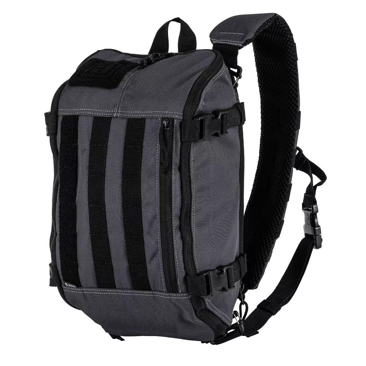 Rapid Sling Pack объемом 9,5 л - однолямочный рюкзак с фирменным дизайном CenterLine ™ версии 5.11 оснащен застежкой-молнией на 270 градусов для быстрого доступа. В рюкзаке предусмотрено два отделения: для скрытого ношения оружия с петлей-крючком для закрепления кобуры или аксессуаров и основное отделение с сетчатыми карманами, два из них застегиваются на молнию. Внешние компрессионные ремни помогают сбалансировать нагрузку. На передней панели рюкзака платформа MOLLE. Рюкзак также можно объединить с системой Rapid Waist Pack для повышения функциональности.