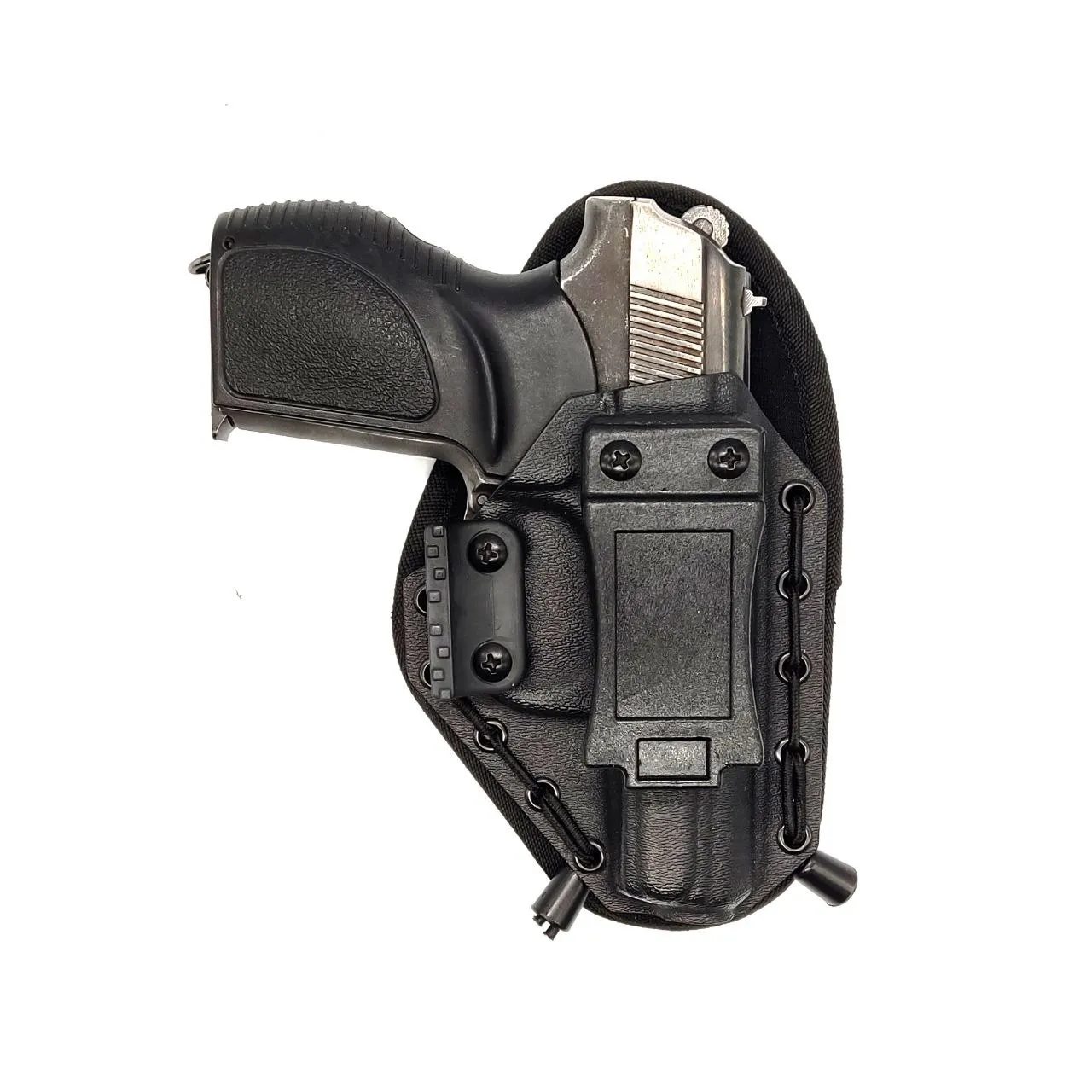 Кобура для ПМ из высококачественного пластика Kydex предназначена для внутрибрючного скрытого ношения (appendix carry). Специальный упор («зуб» или «крыло») подворачивает рукоять оружия ближе к телу, делая пистолет максимально незаметным под одеждой.